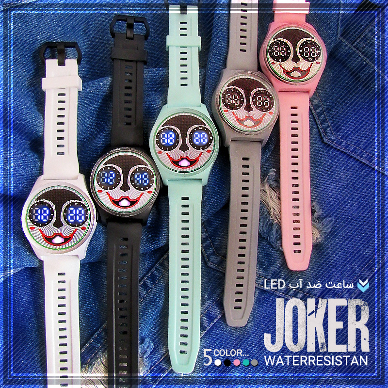 ساعت ضدآب JOKER دارای صفحه ی نمایش دیجیتالی بوده و صفحه بسیار زیبا و شفاف که با فشار دادن دکمه کنار ساعت صفحه نمایش به شکلی زیبا پدیدار می شود، همزمان با روشن شدن صفحه، چراغ های LED آبی رنگ به کار رفته در داخل صفحه قابل درک خواهد بود و ساعت را به نمایش در می آورد، این ساعت مچی دارای تقویم روز شمار نیز می باشد که به صورت دیجیتالی به نمایش پدیدار می شود. این ساعت ضد آب است و در هنگام استحمام میتوانید با خیال راحت از این ساعت استفاده کنید. این ساعت با بند های سیلیکونی در 5 رنگ جذاب که مناسب سلیقه همه هست ارایه شده و هنگام ثبت سفارش می توانید رنگ مورد نظر را انتخاب کنید.