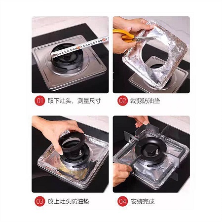 نظافت گازی که فویل محافظ آلومینیومی بر روی آن نصب شده است بسیار کار آسانی است فقط کافی است یک دستمال را نمناک کرده و روی فویل قالبی گاز را با آن تمیز کنید ، اگر از فویل آلومینیومی استفاده نشده باشد نظافت گاز کاری بسیار طاقت فرساست زیرا بر روی صفحه گاز چربی ها انباشته شده و با حرارتی که میبیند سفت شده و میچسبد ، برای تمیز کردن این آلودگی ها نیاز به انواع شوینده ها پیدا میکنید که برای صحفه گاز بسیار مضر میباشد و عمر آن را به شکل قابل توجهی کاهش میدهد ، با کمترین هزینه و خرید یک پک 10 عددی محافظ اجاق گاز میتوان از پوسته شدن و خرابی صفحه اجاق جلوگیری کرد.