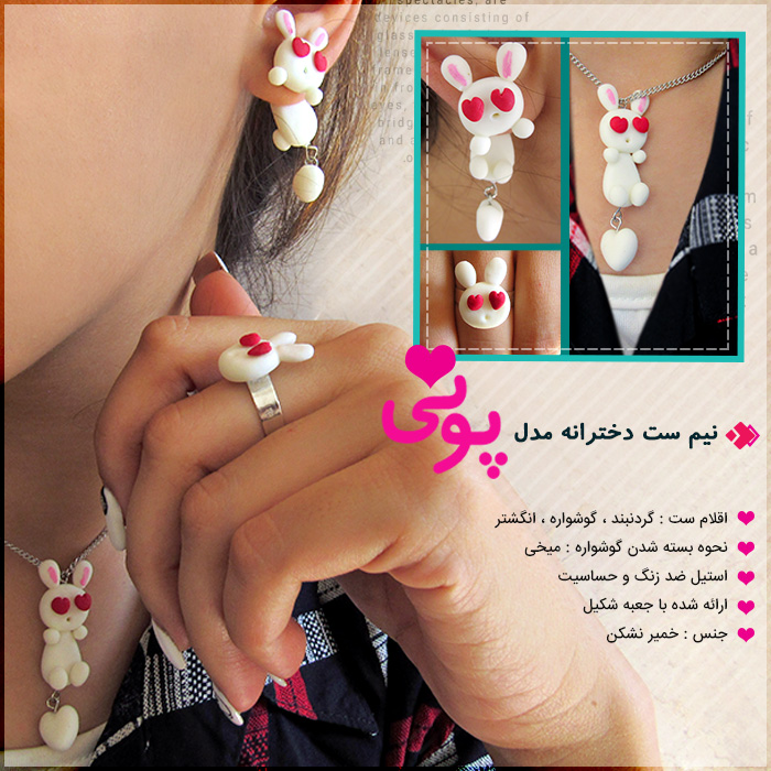 نیم ست شیک گردنبند و گوشواره و انگشتر پونی تماما دست ساز بوده و با استیل ضد حساسیت ارائه شده. رنگ بندی و طراحی زیبای این مجموعه, احساسات منفی مانند ترس و مشغلههای ذهنی و نا آرامی را از شما گرفته و آرامش را جایگزین آن میکند. این نیم ست شیک دارای یک زنجیر ظریف از جنس استیل ضد حساسیت و ضد زنگ به طول ۴۶ سانتی متر می باشد که در زمان استفاده بر روی پوست سبب بروز حساسیت نمی شود. در حال حاضر طراحان و برندهای بی شماری در زمینه تولید زیورآلات زنانه فعالیت می کنند که هرکدام هنر و خلاقیت مخصوص به خود را دارند و طرح های زیبایی خلق می کنند. اگر جزو دسته خانم های خوش پوش هستید و به بازار زیورآلات علاقه مندید این ست جذاب و زیبا را به شما پیشنهاد می کنیم .