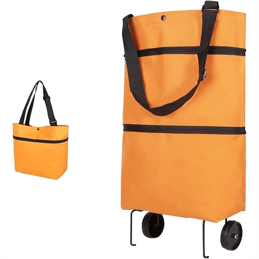 این کیف از جنس پارچه برزنتی ساخته شده و ضد آب، ضد پارگی، گرد و غبار و بادوام است که با طرح های رنگارنگ چاپ شده، شیک و مد روز است. چرخ های آن تاشو جهت حمل آسان می باشد، اندازه آن می تواند مانند یک کیف کوچک پس از تا کردن باشد. پارچه نایلونی با چگالی بالا باعث می شود ظرفیت باربری قوی داشته باشد. کیسه با ظرفیت زیاد می تواند بسیاری از چیزها را در خود جای دهد، مانند لباس، میوه، سبزیجات، کفش و غیره.