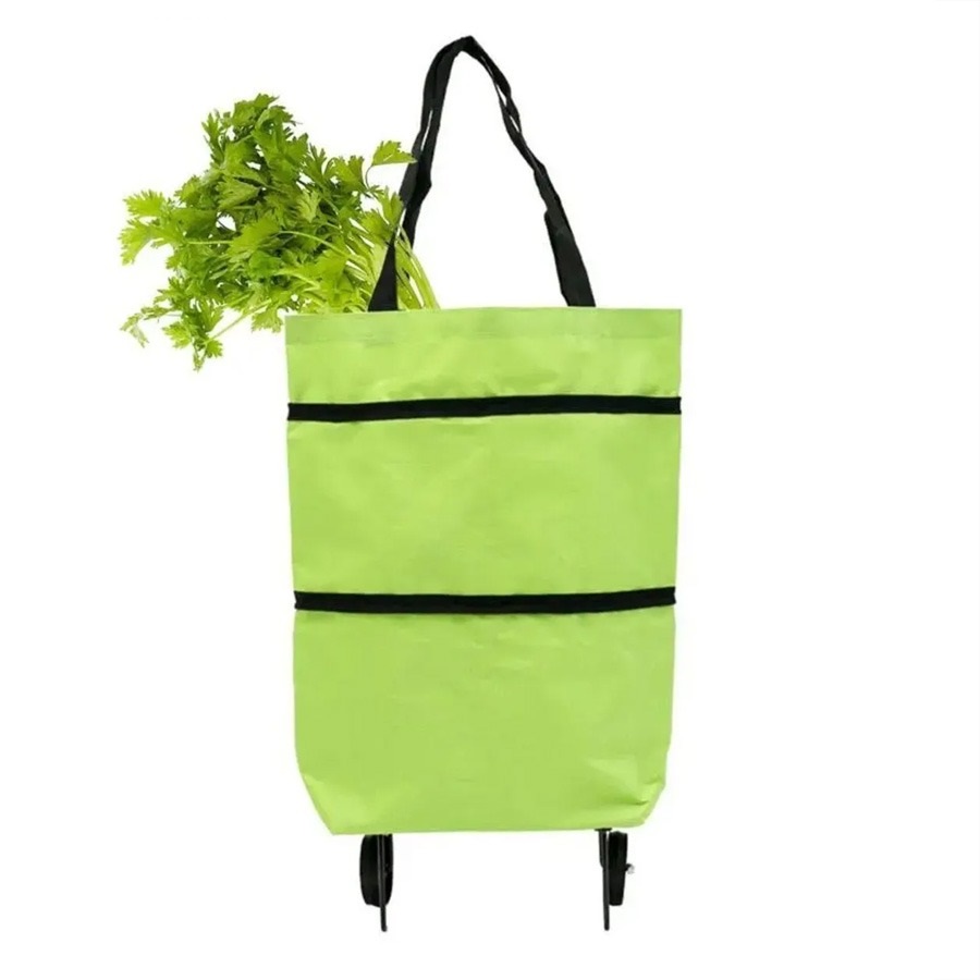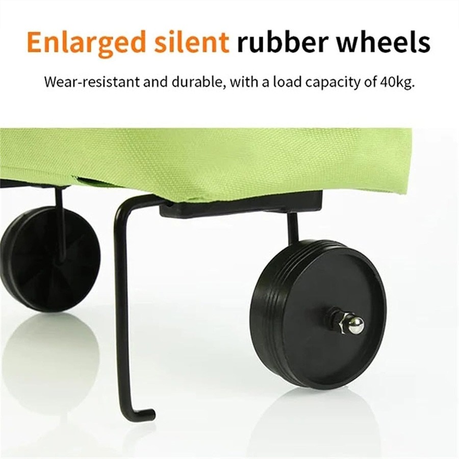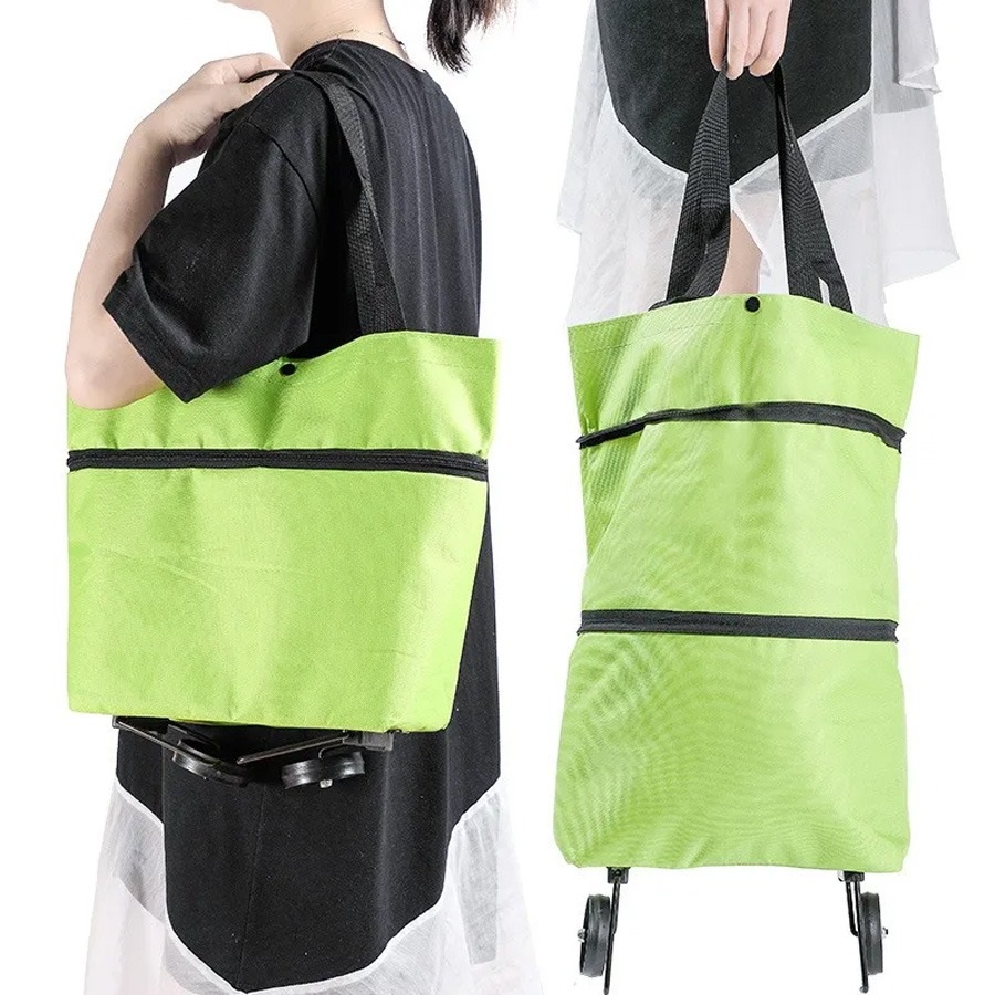 کیف خرید چرخدار تاشو دارای چرخهایی است که به شما کمک میکند بدون اینکه وزن خریدتان را بر روی شانهها یا دستهای خود احساس کنید، خریدتان را بهراحتی حمل کنید. برای استفاده از ساک خرید در حالت چرخدار، کمی تایرها را به سمت عقب کشیده تا از محل خود خارج شوند و در حالت چرخدار از ساک خرید استفاده کنید.
